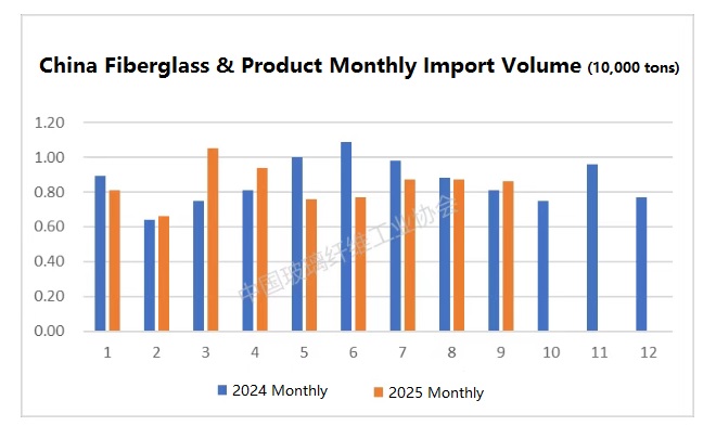 From January to September 2025, China’s total import volume of glassfiber and related products was 75,900 tons, a 3.3% year-on-year decrease.